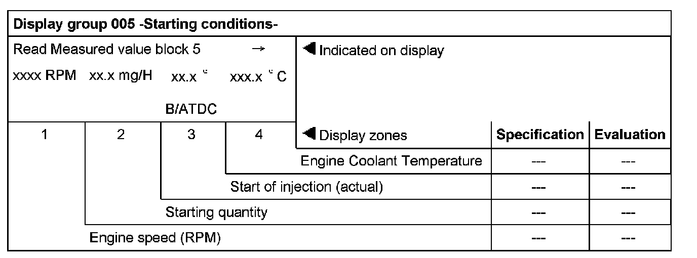 Display group 007 with ignition switched on (engine cold and not running)