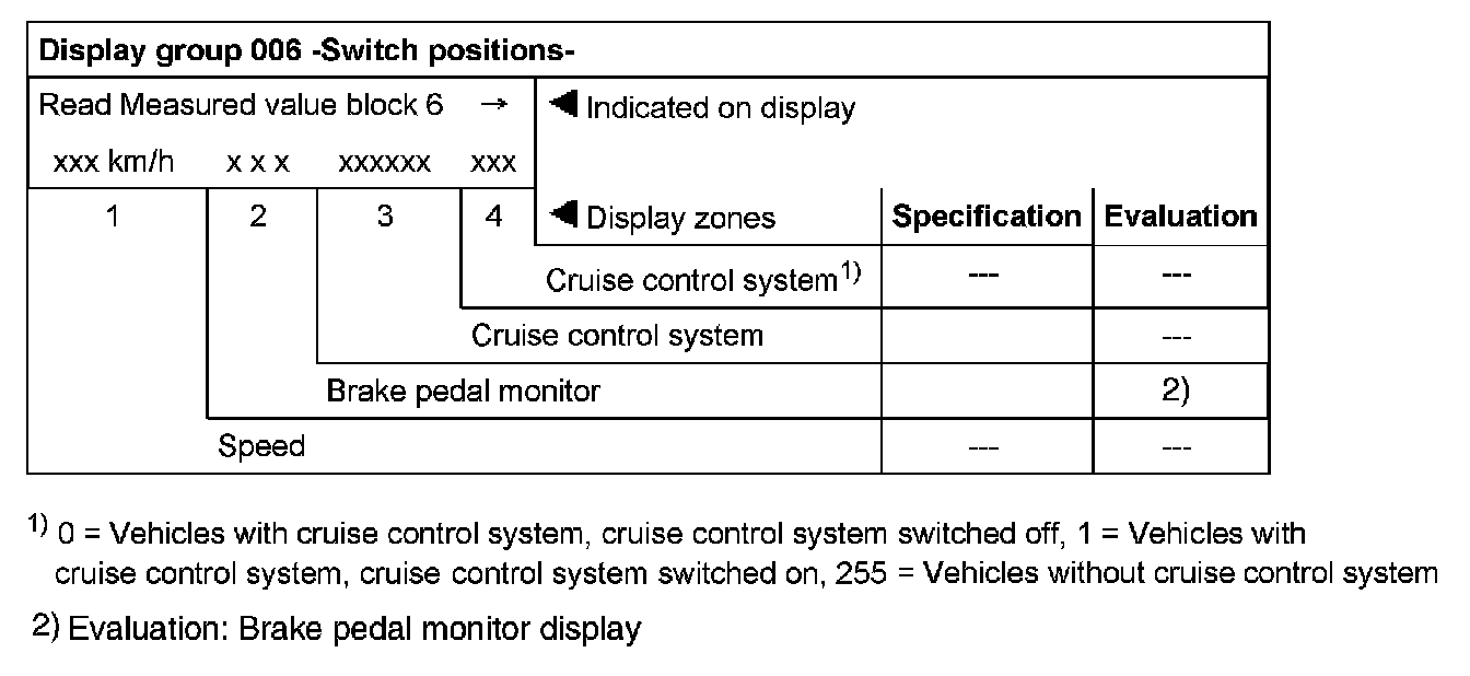Display group 006 with ignition switched on