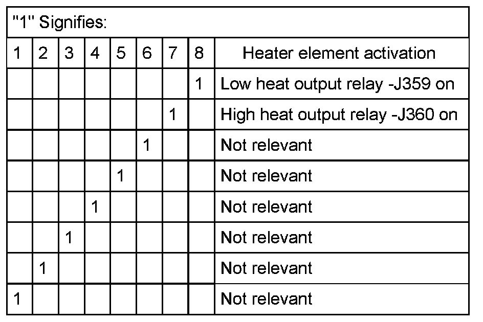 Significance of figures in 2-digit or 8-digit number block for heater element activation: