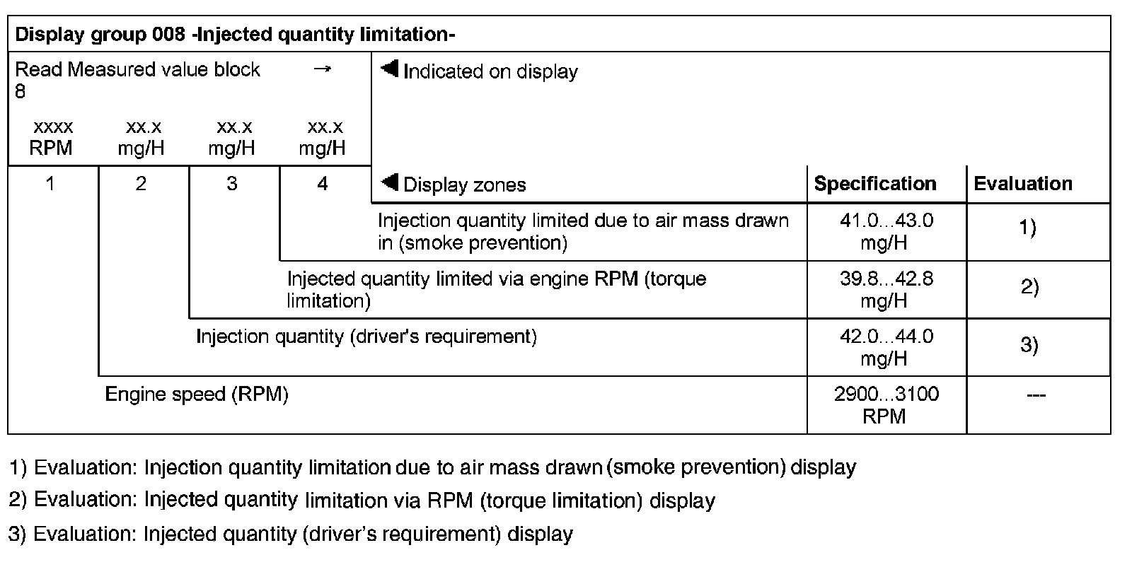 Display Group 008 - Injected Quantity Limitation: