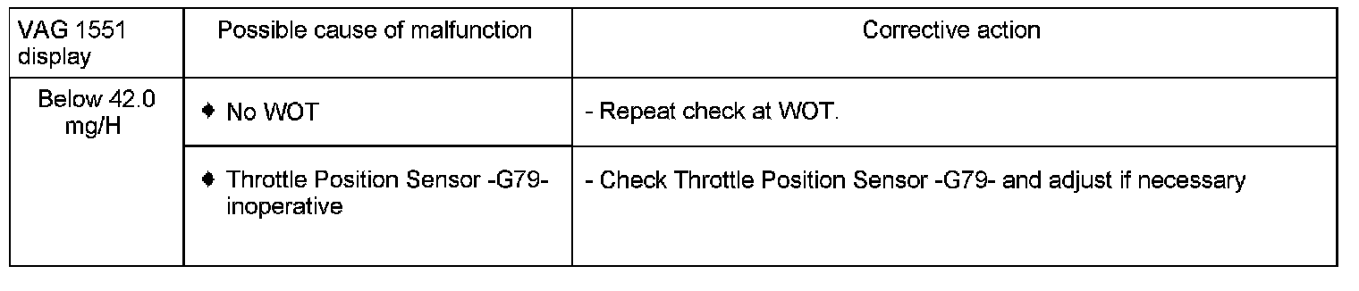 - When testing, accelerate vehicle at WOT.