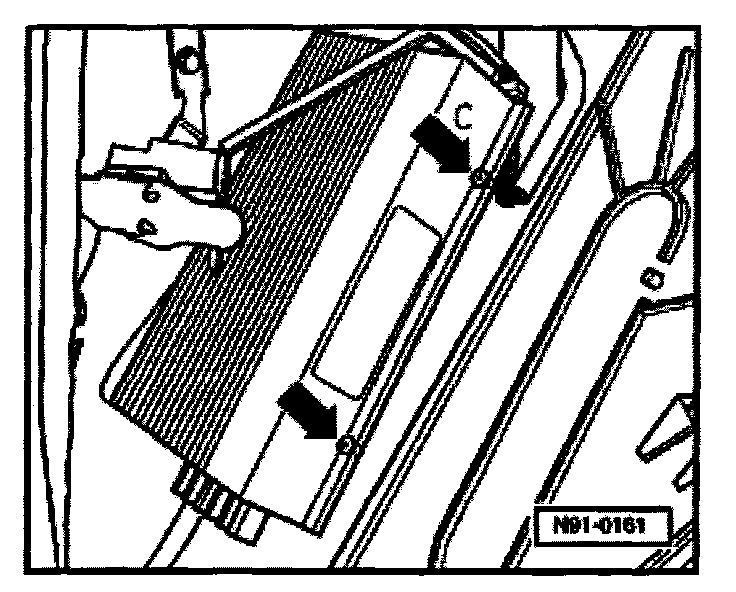 - After reconnecting battery, re-code and check operation of anti-theft radio. Also check operation of clock and power windows according to Repair Manual and/or Owner's Manual.