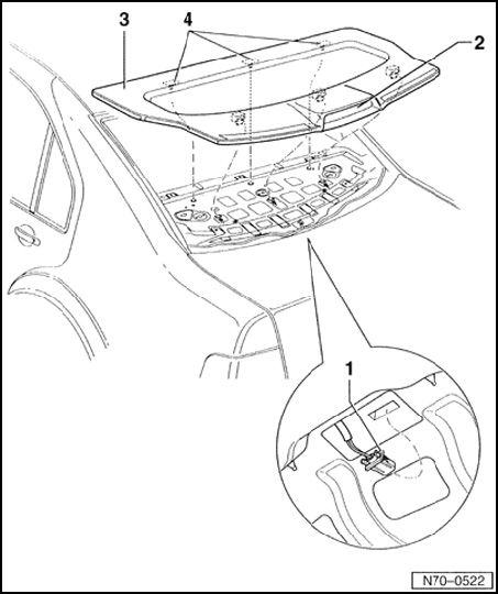 - Unclip rear shelf - 3 - and remove.