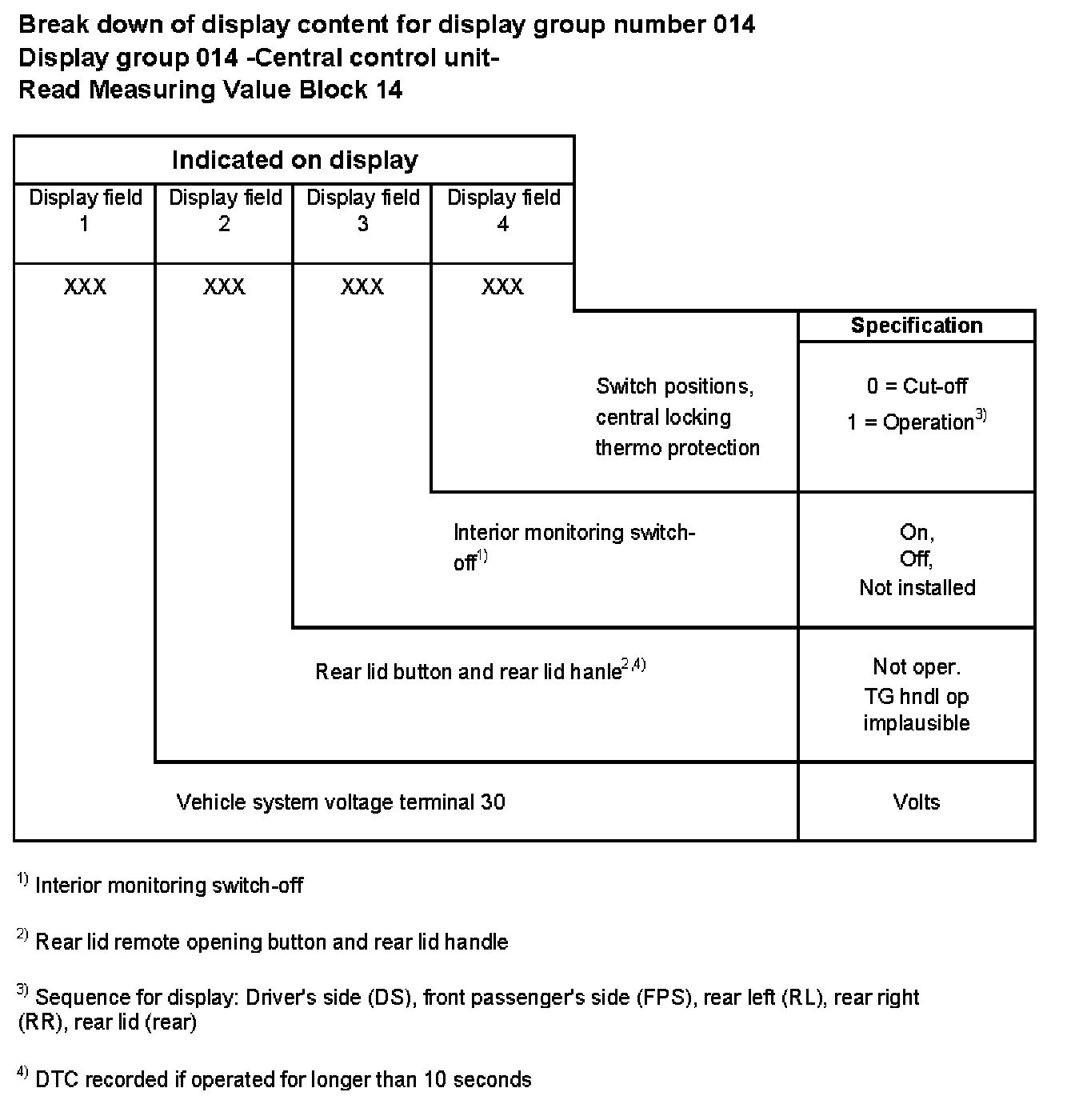 Break down of display content for display group number 014