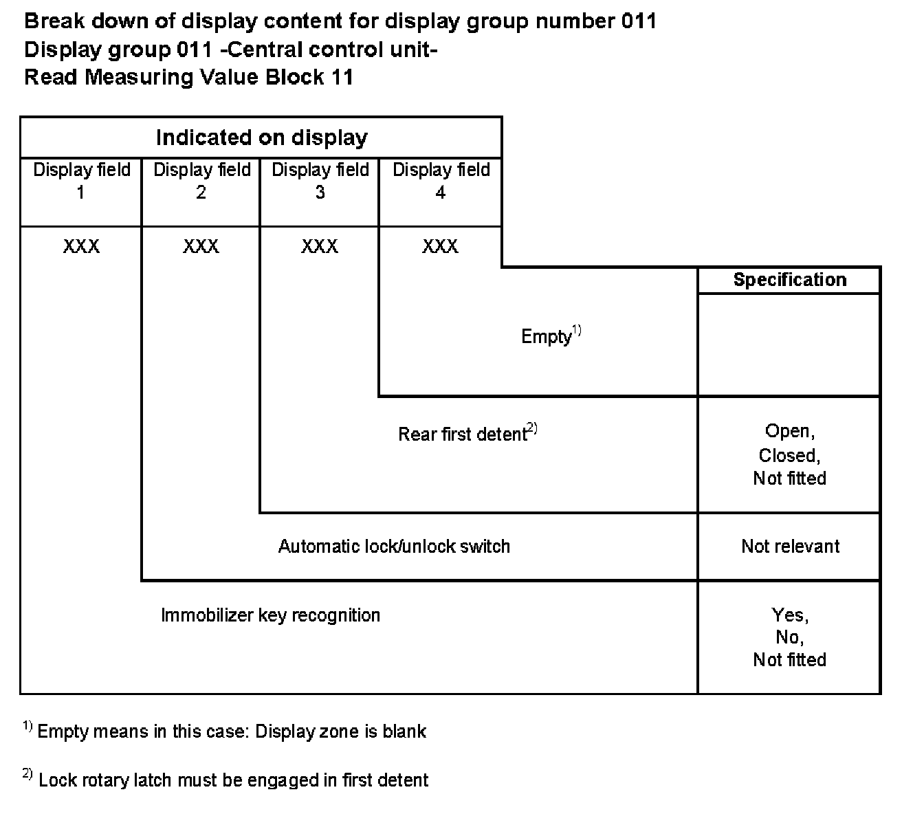 Break down of display content for display group number 011