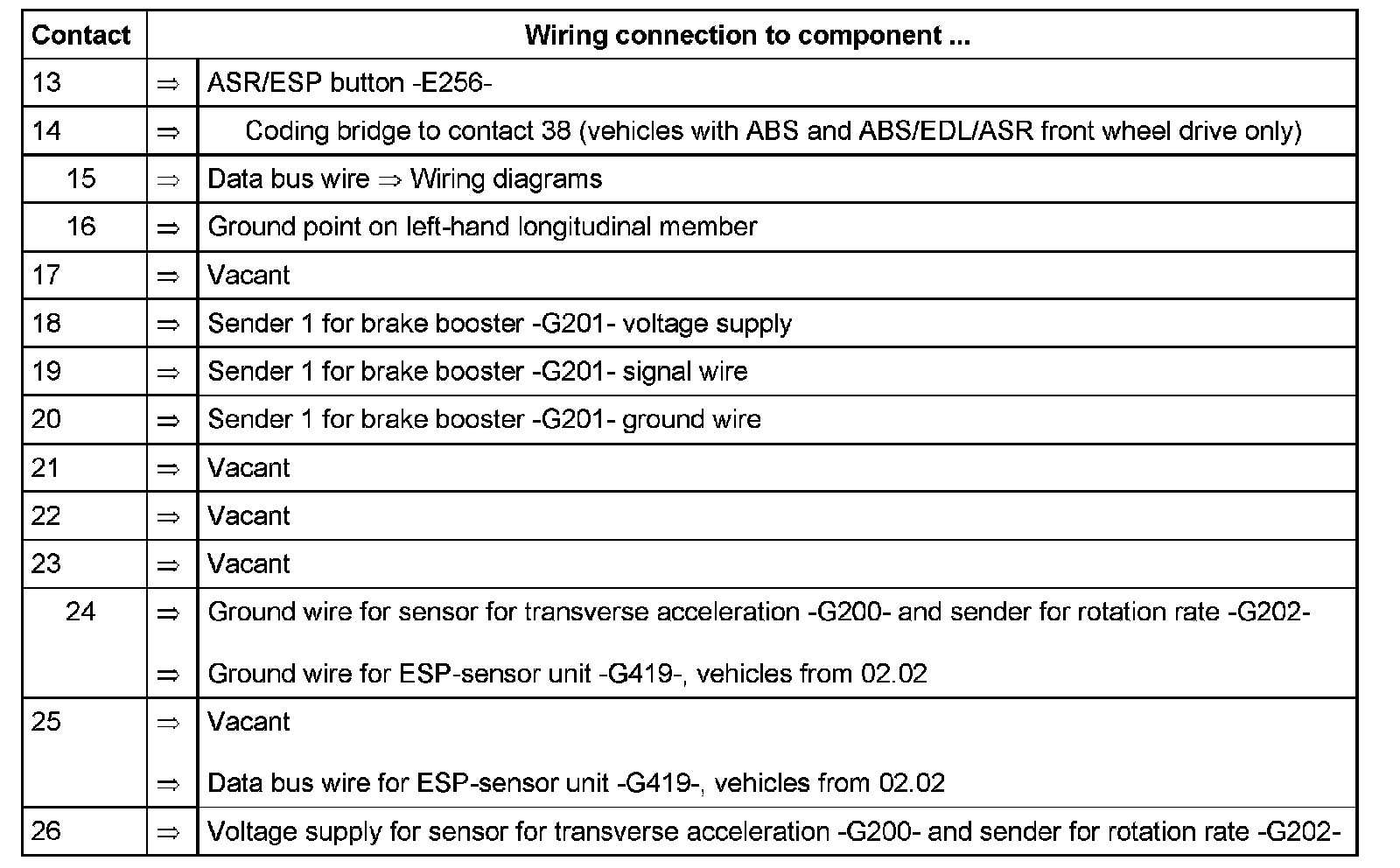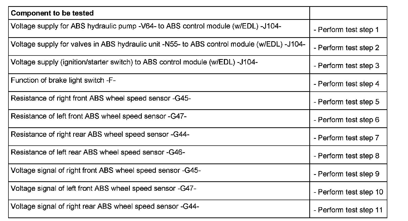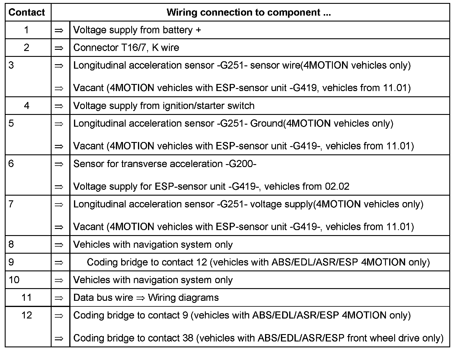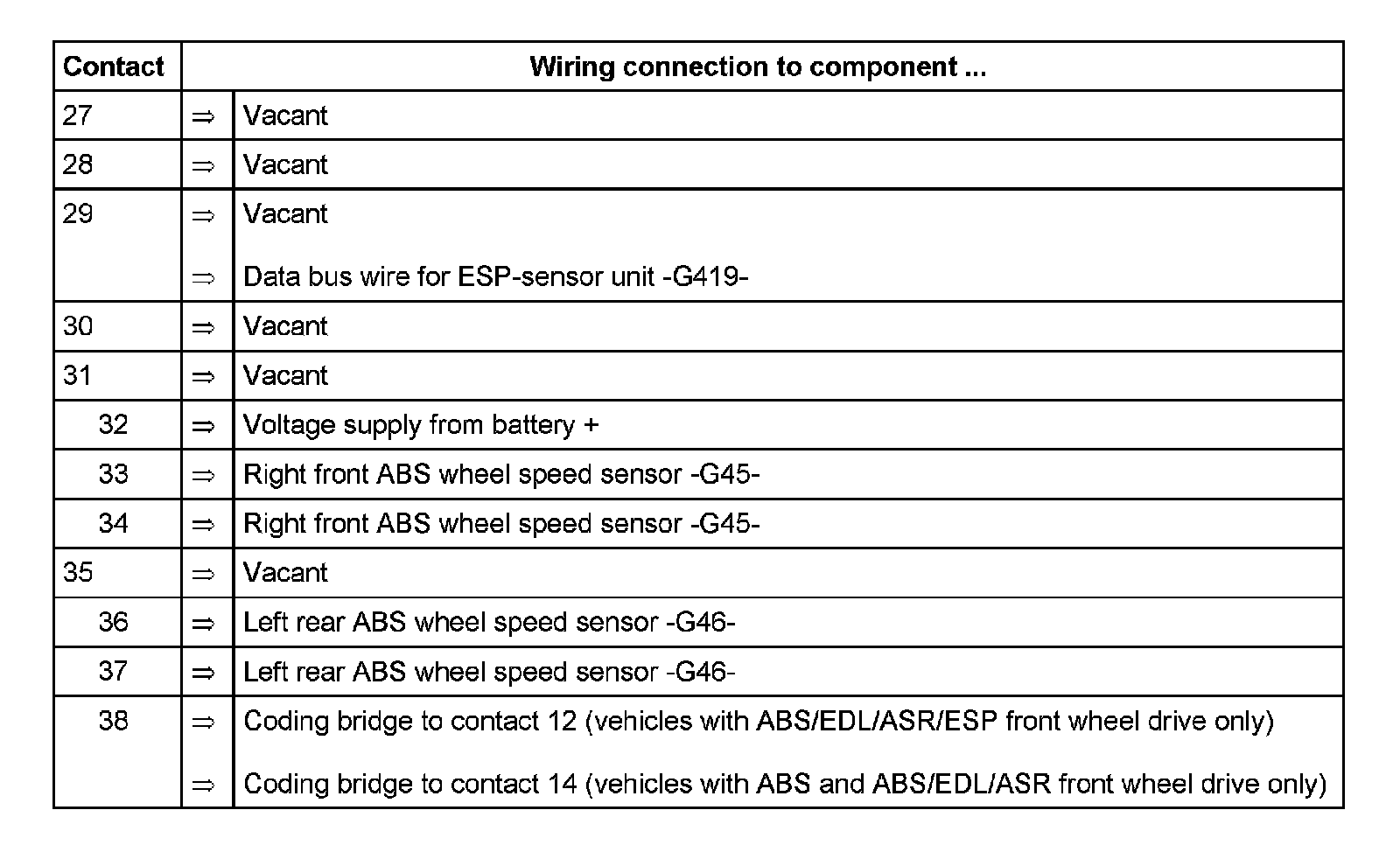 Contact 7 = K wire to contact 2 of multi-pin connector T47 of ABS control module (w/EDL) -J104