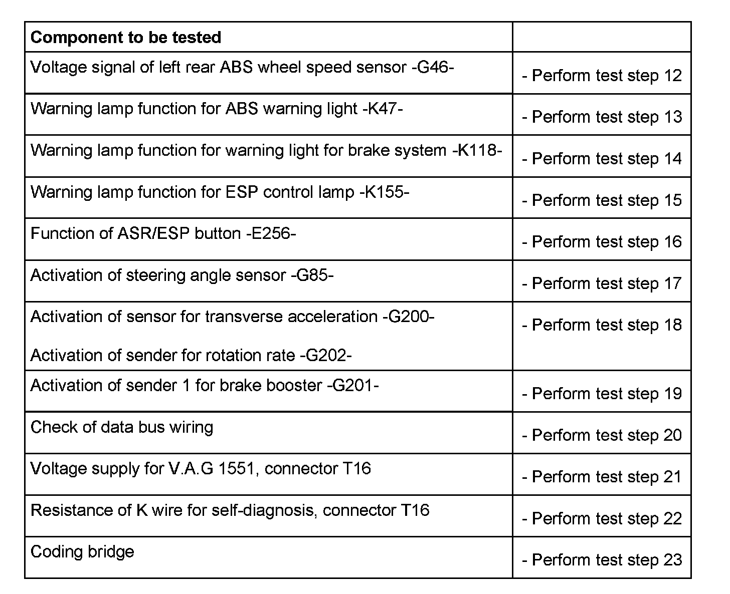 Contact assignment of connectors for voltage supply and self-diagnosis with the V.A.G 1551 scan tool