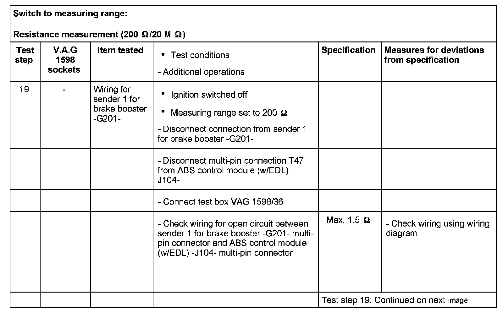 - If the measured figures only deviate slightly from the specifications, clean sockets and plugs of the testers and adapter cables (with contact spray G 000 700 04 ) and repeat check. Before replacing components, check wiring and connections and also, particularly for specifications of less than 10 ohms, repeat resistance check on the component.