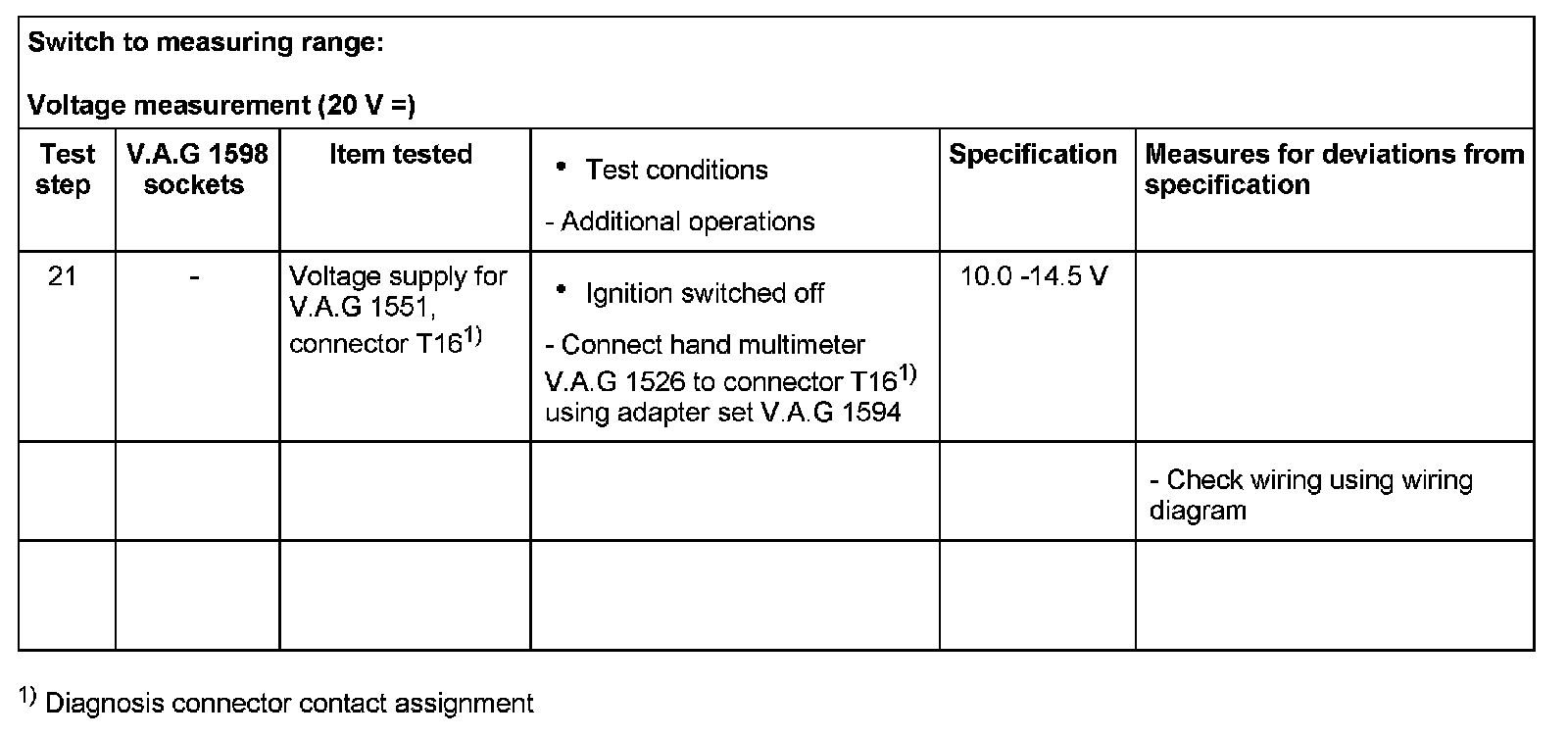 - If the measured figures only deviate slightly from the specifications, clean sockets and plugs of the testers and adapter cables (with contact spray G 000 700 04 ) and repeat check. Before replacing components, check wiring and connections and also, particularly for specifications of less than 10 ohms, repeat resistance check on the component.