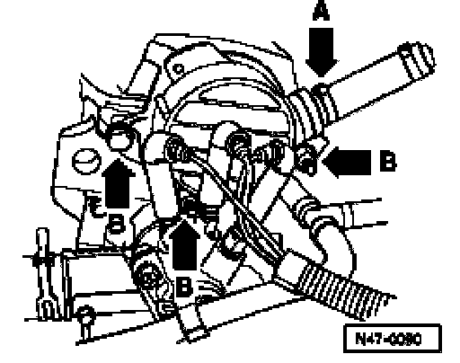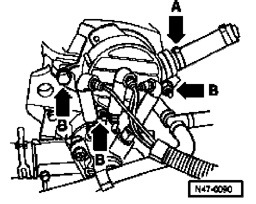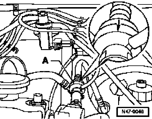 - Loosen vacuum hose clamp (arrow -A-) and remove hose from pump.