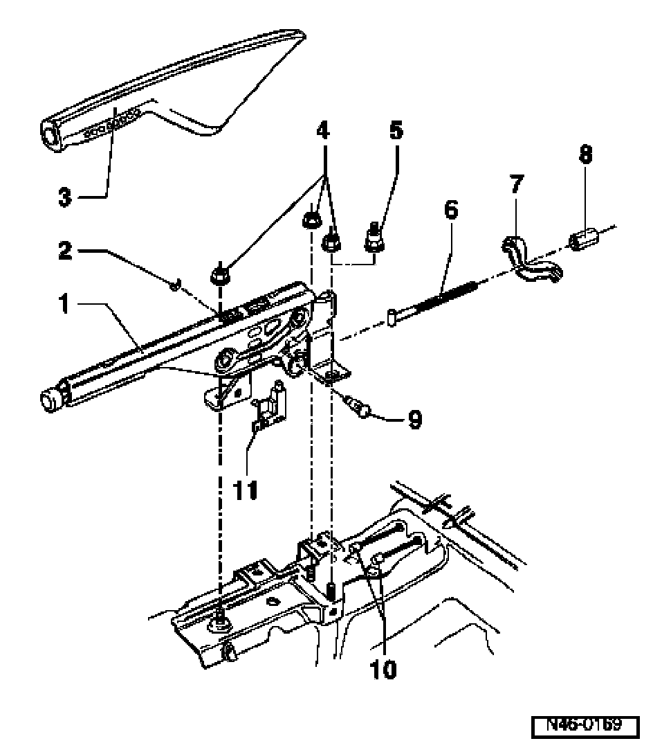 - Mounts pull rod -item 6 in parking brake