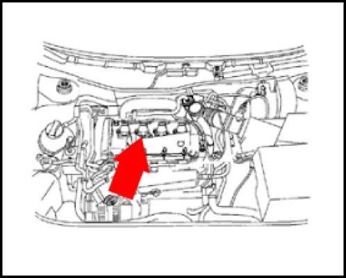 on engine, center of valve cover