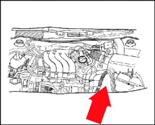 top of transmission housing, to left of transmission cooler