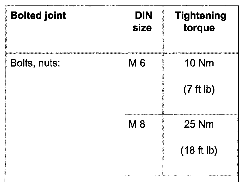 Tightening torques