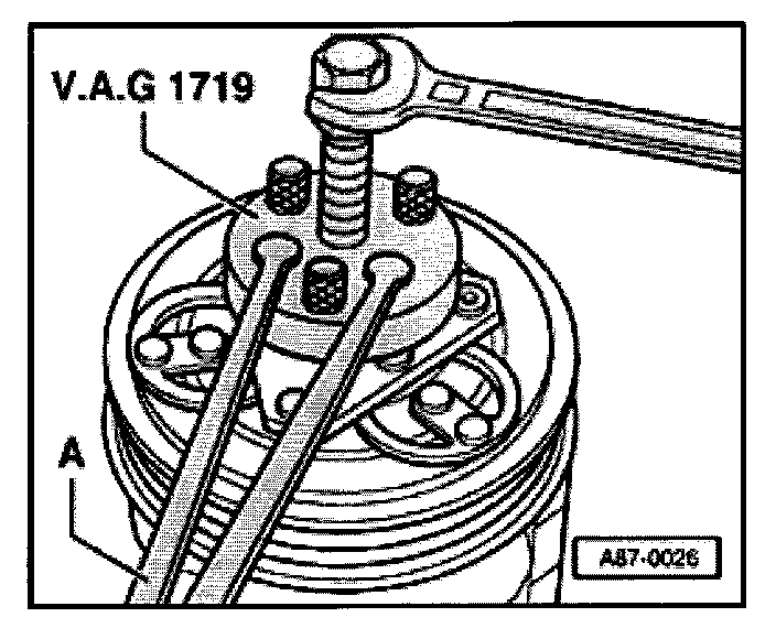 Mount VAG 1719 and turn in center bolt to extract clutch plate.