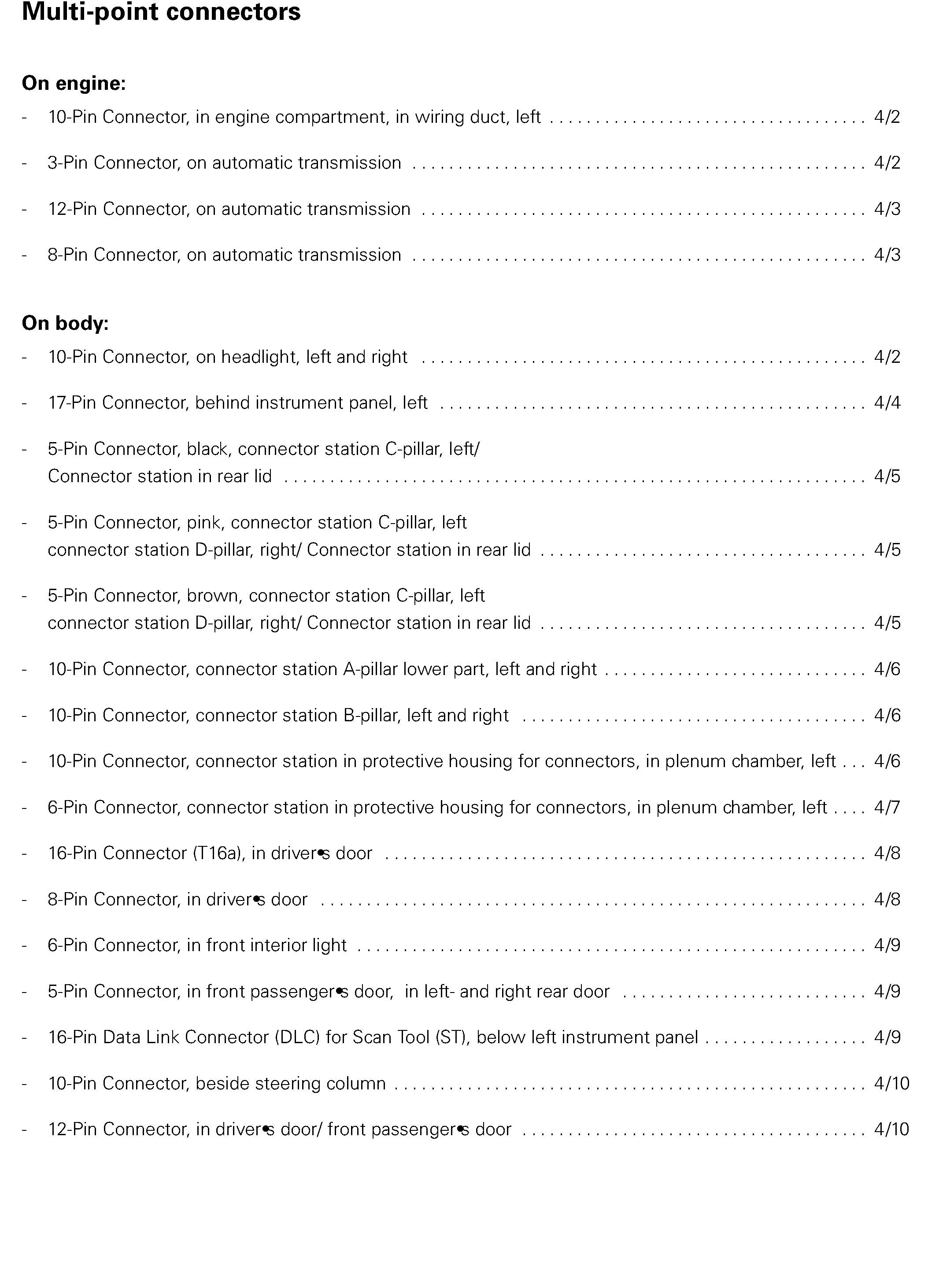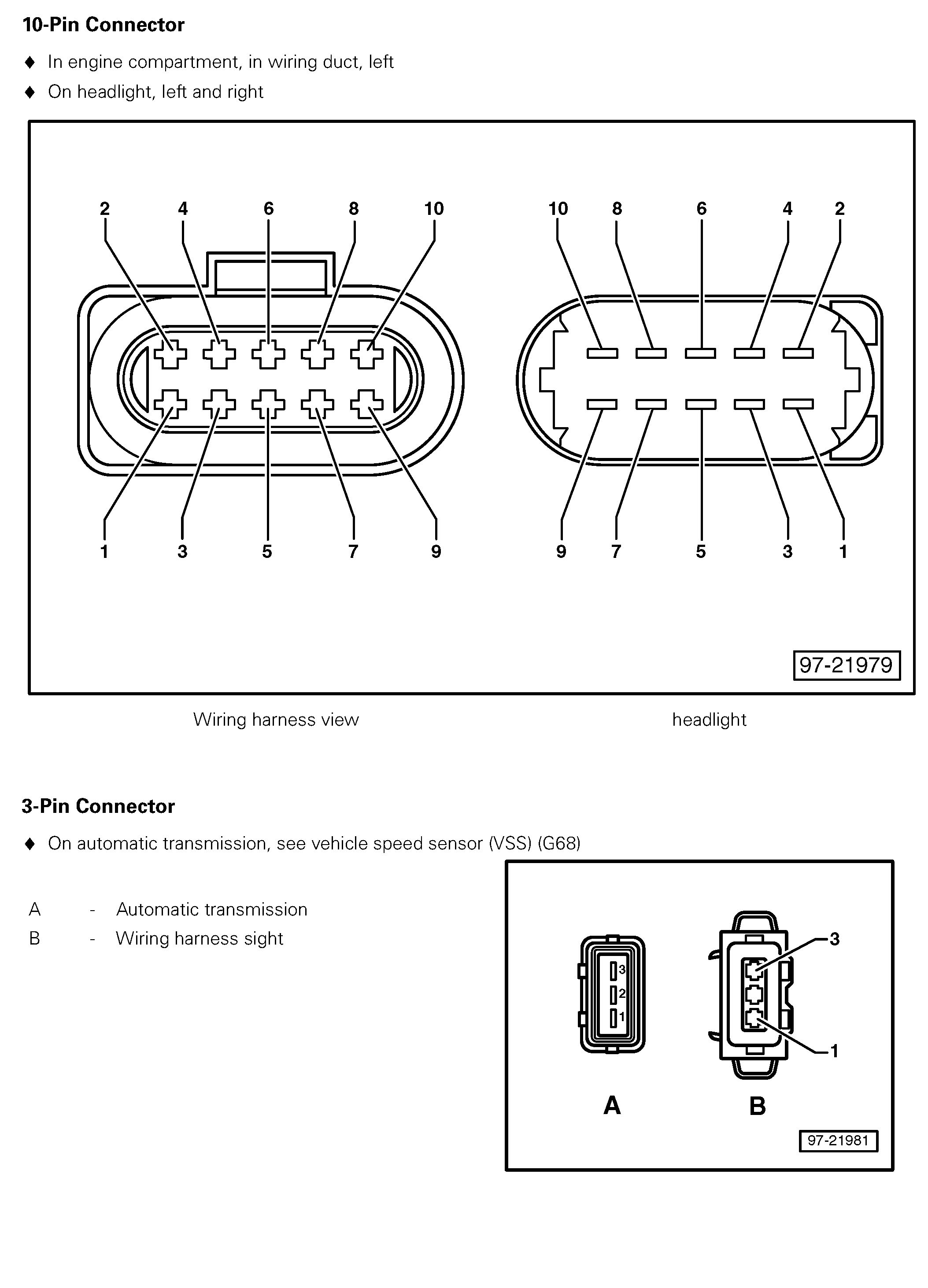 4/2 - 10 Pin Connector, In Engine Compartment, In Wiring Duct, Left; 3 Pin Connector, On A/T:
