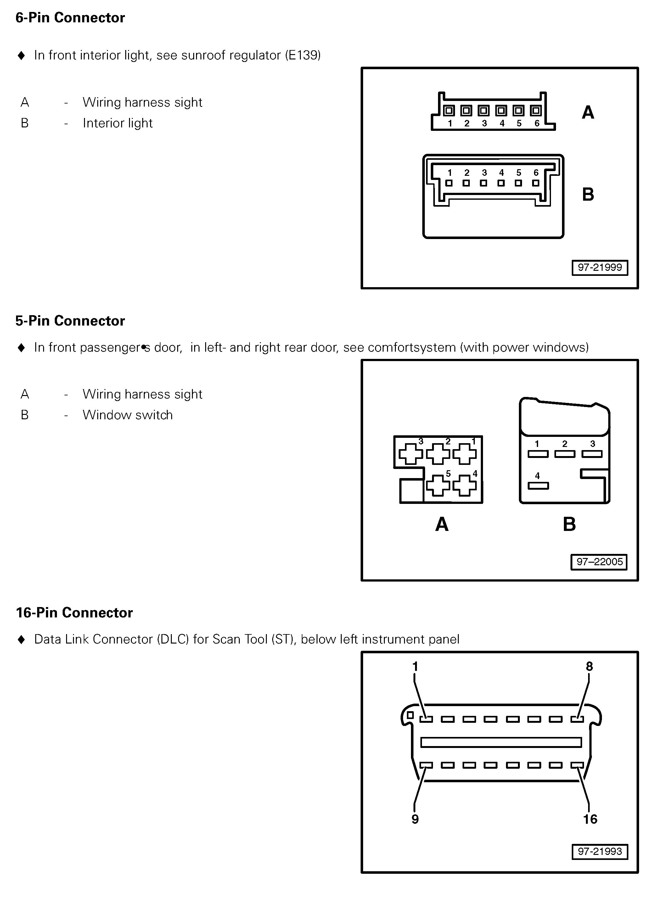 4/9 - 6 Pin Connector; 5 Pin Connector; 16 Pin Connector: