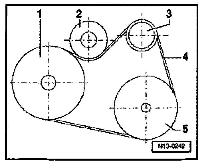 4 - Ribbed belt - Crankshaft/vibration damper, tensioning roller, generator and power steering vane pump