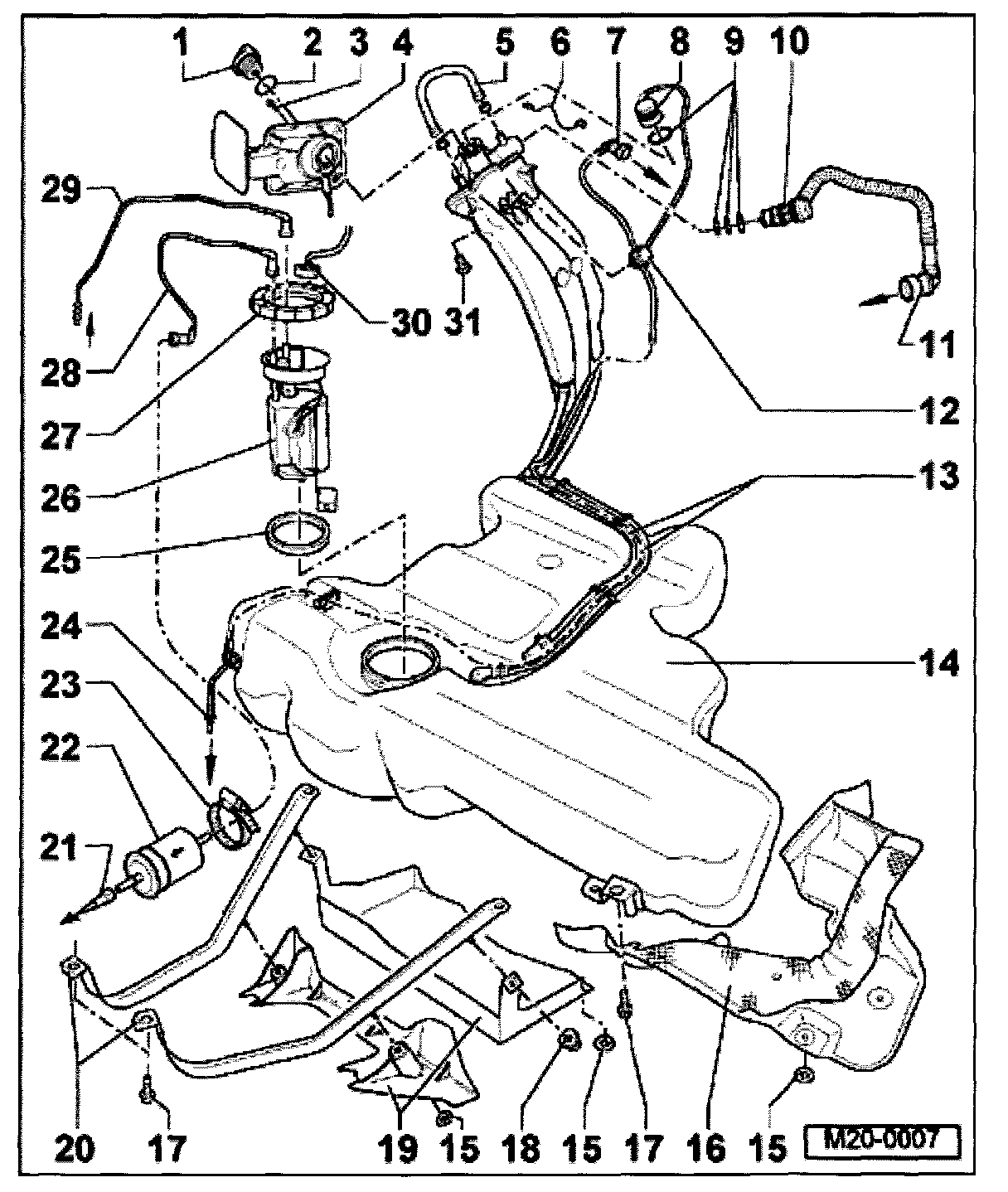 - Mark on sensor must align with mark on fuel tank (arrows).