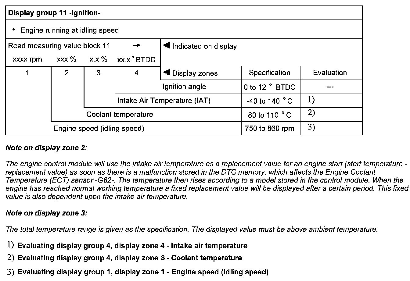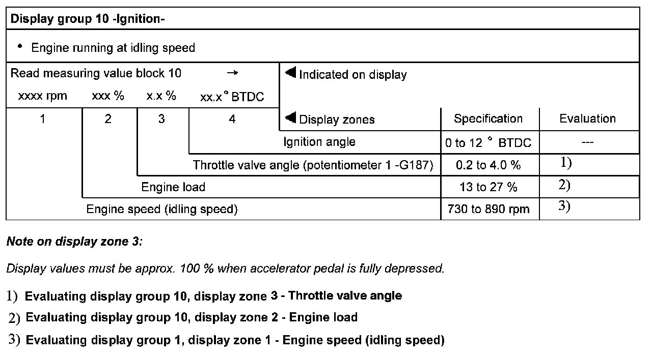 Evaluating display group 10, display zone 3 - Throttle valve angle