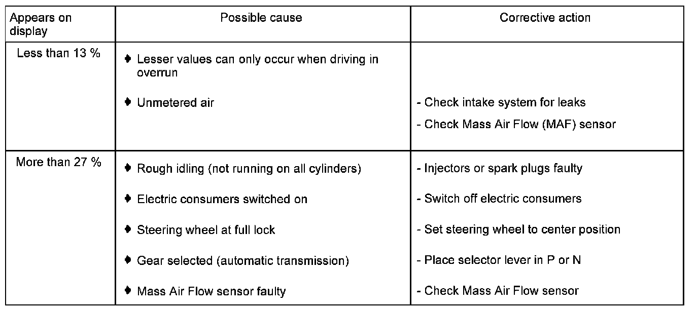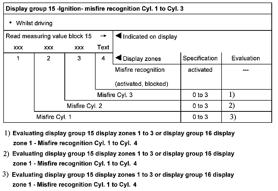 Display group 15 - Ignition- Misfire recognition Cyl. 1 to Cyl. 3