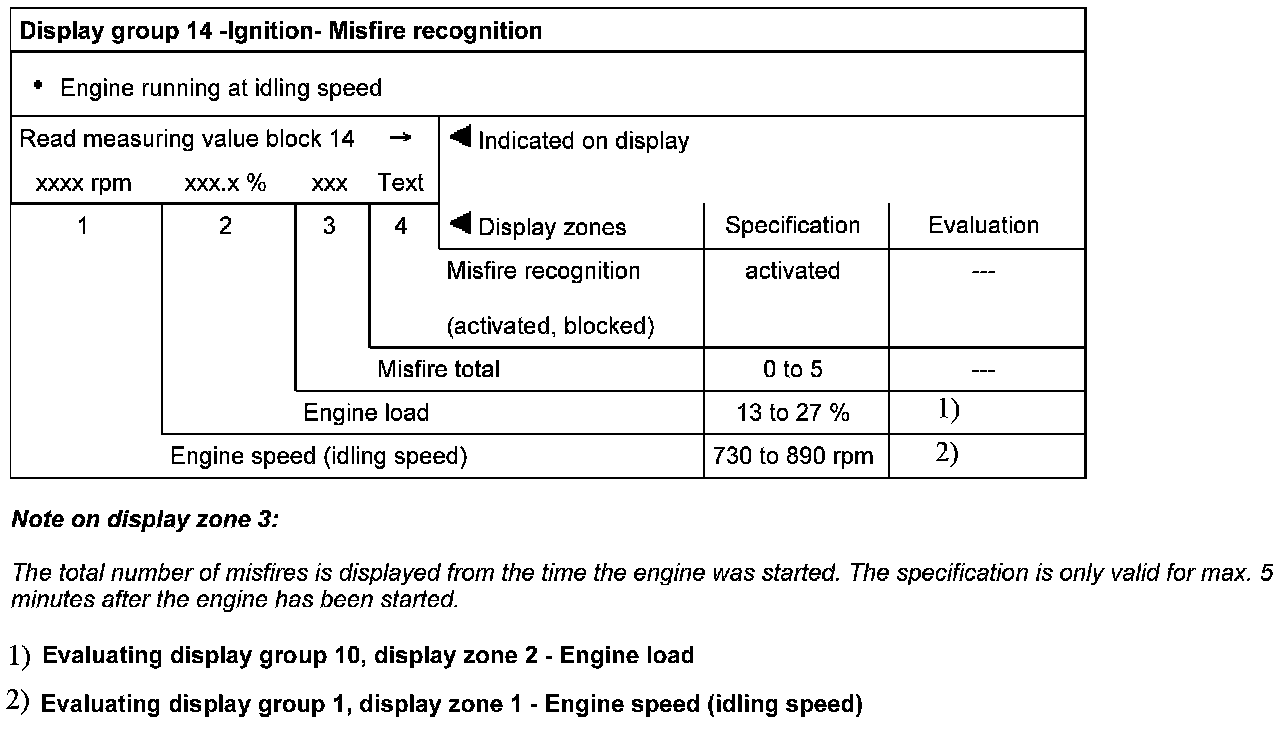 Display group 14 - Ignition- Misfire recognition