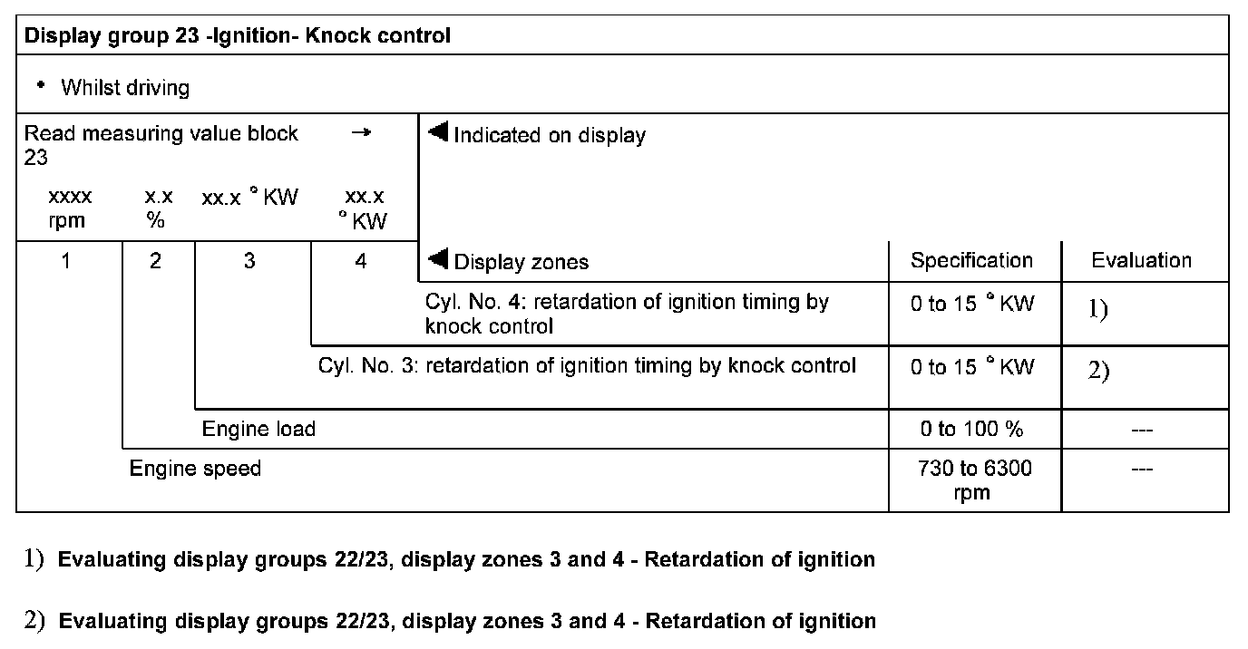 Display group 23 - Ignition- Knock control