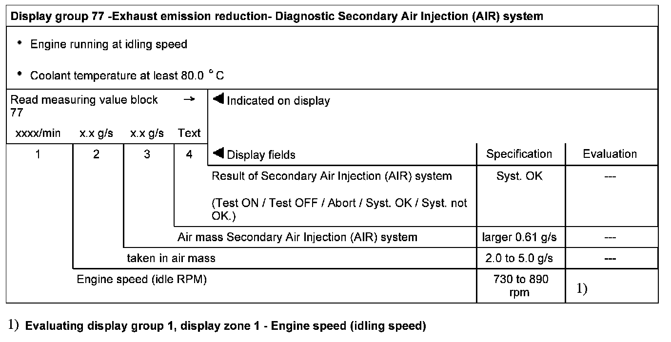 Display group 77 - Exhaust emission reduction - Diagnosis Secondary Air Injection (AIR) system