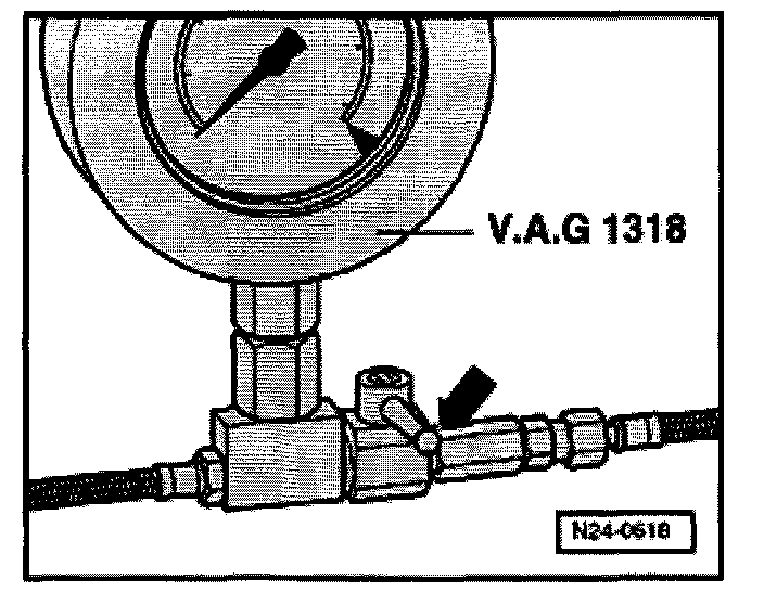 - V.A.G 1318 Pressure gauge connected.