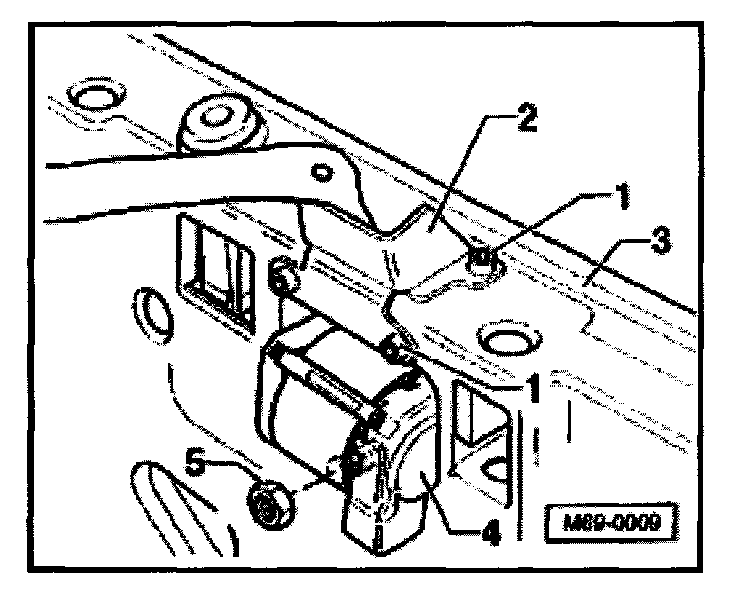 - Remove six-sided nuts -5- (tightening torque: 40 Nm) and separate the belt inertia reel -4- from backrest frame -3-.