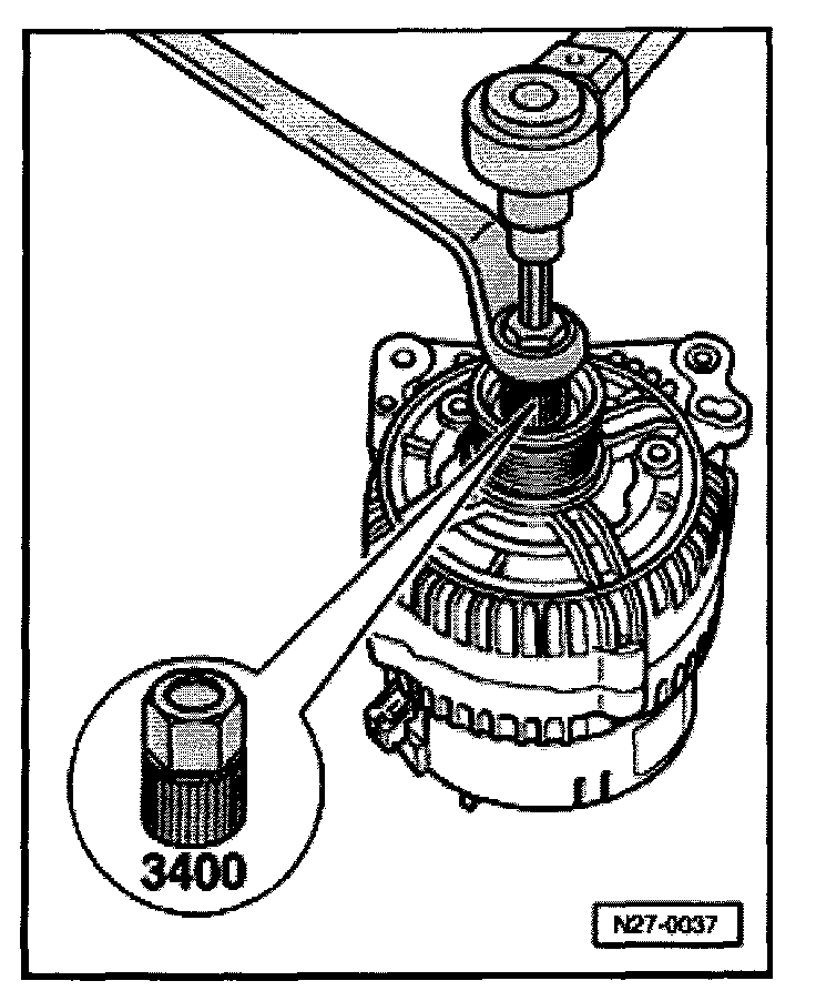 - Counter-hold multi point key 3400 with 17 mm ring spanner and tighten freewheel disc to 80 Nm by turning generator drive shaft anti-clockwise with torque wrench.