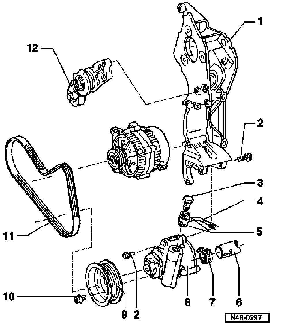 ^ Mark with a crayon or marker the direction of travel before removing the ribbed belt. Reinstalling a used belt in the opposite direction could damage the belt.