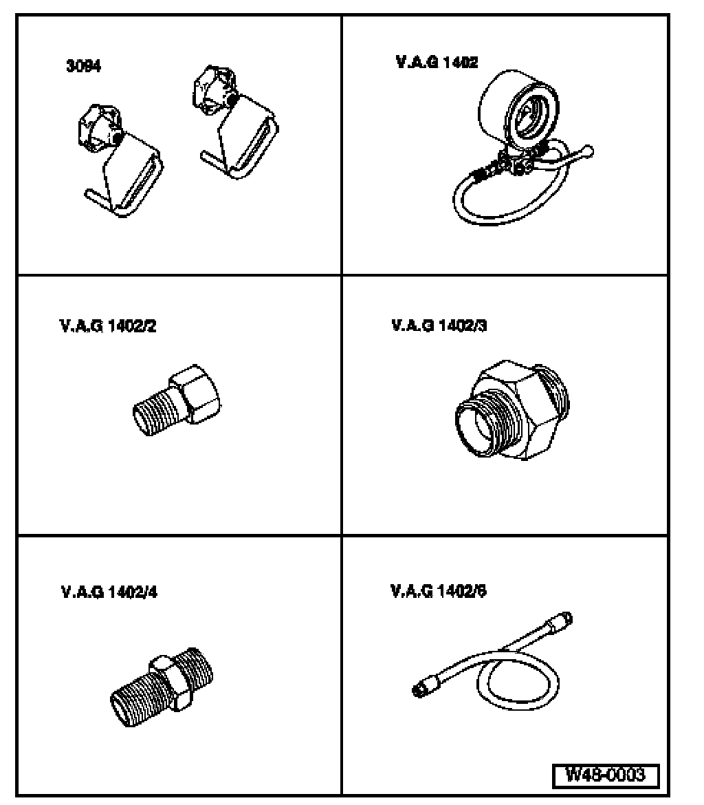 - With engine running at idling speed, close cut-off valve (not longer than 5 seconds) and read off pressure.