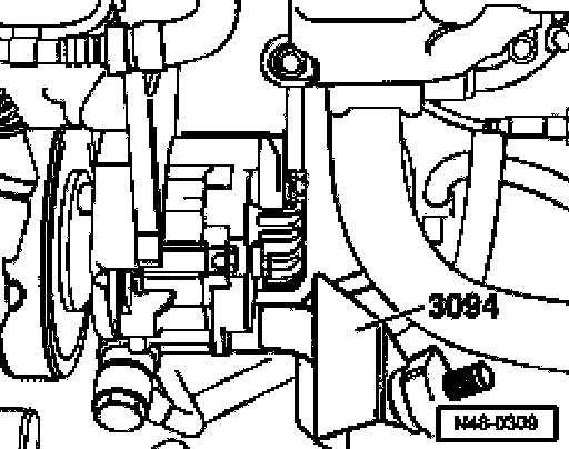 ^ Removing and installing power steering pump, vehicles with high mounted power steering pump, Refer to Power Steering Pump, Service and Repair.
