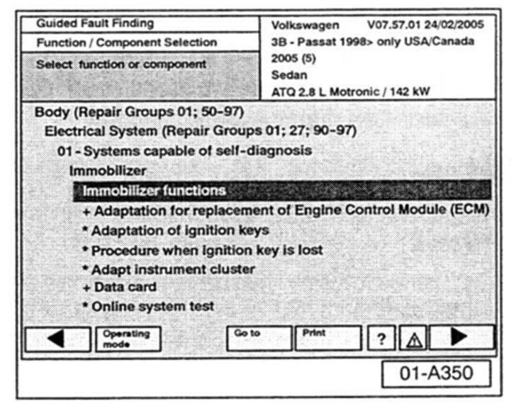 ^ It is recommended to use the Guided Fault Finding operation mode for diagnosis, test plan, and adaptation before the Immobilizer instrument cluster and/or engine control units are replaced.