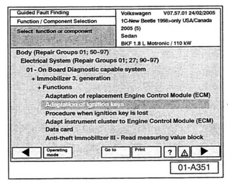 All Immobilizer system components must be adapted using VAS 5051 or VAS 5052 online connection after March 31, 2005.