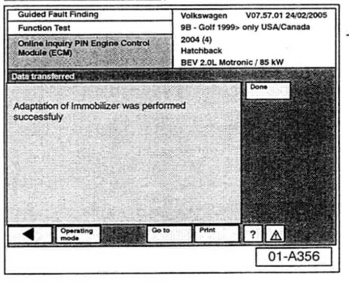^ The new GeKo process will not display the actual Immobilizer code to the user. The system will download the code directly into the various control modules.