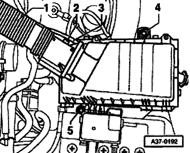 - Remove complete air cleaner housing by removing bolts -4- and -5-.