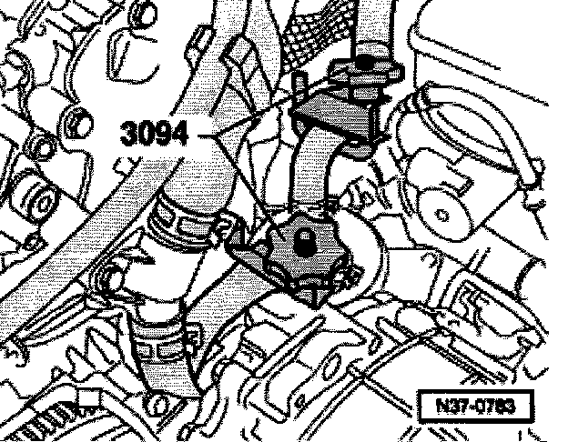- Disconnect left connecting link -1- from control arm and turn link upward.