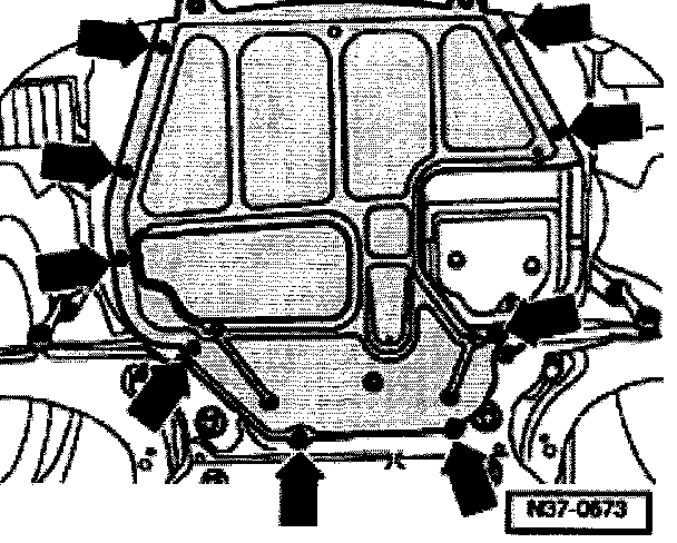- Remove sound insulation tray -arrows-.