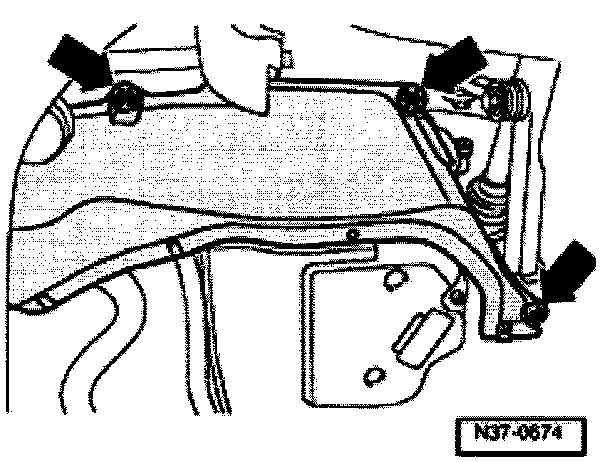 - Check for hose and cable connections in area of engine mounting eye for support 10222A and remove if necessary.