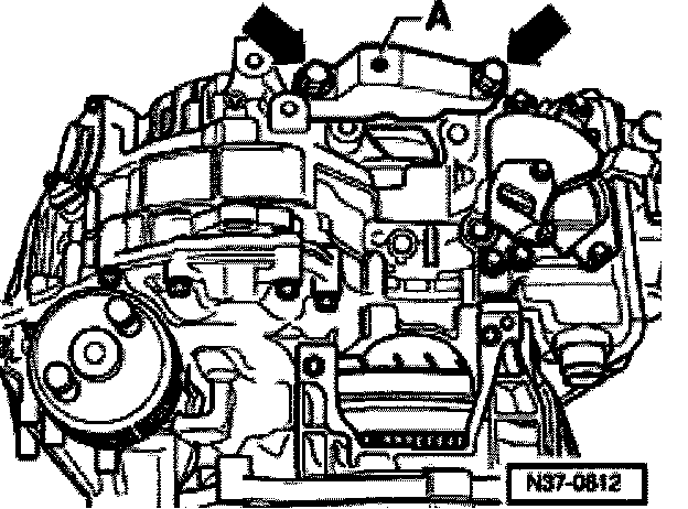 - Remove lower rear engine/transmission securing bolt-A-.