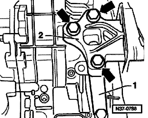 - Remove engine/transmission connecting bolt (arrow).