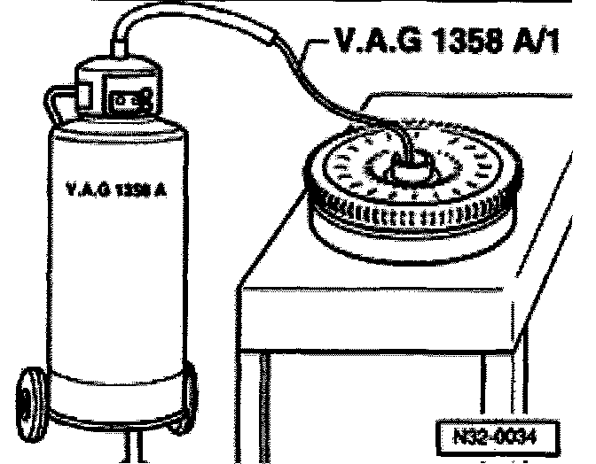 - Extract ATF from torque converter using V.A.G 1358 A and probe V.A.G 1358 A/1.