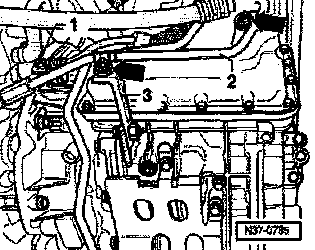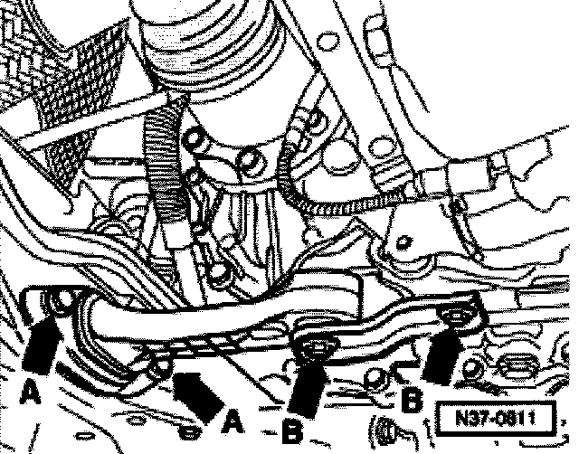 - Remove power steering line from rear of transmission (in area of pendulum support) and tie to one side.