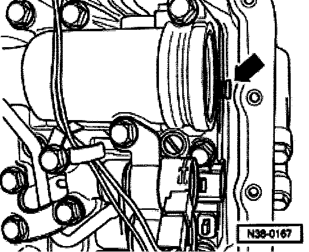 - Move selector shaft left and right and watch manual valve -arrow-.