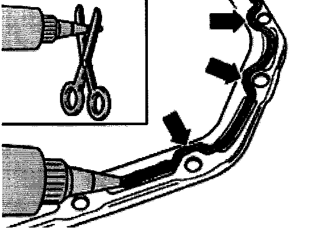 - Remove sealant residue on pan with a rotating brush, e.g. a hand drill with a plastic brush (wear protective glasses).