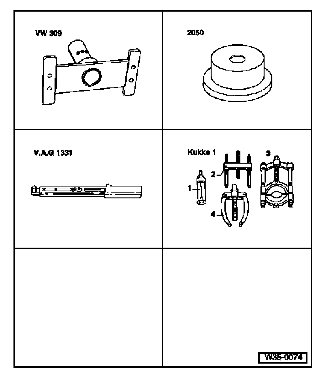 ^ Remove transmission housing and pull tapered roller bearing outer race out of transmission housing.
