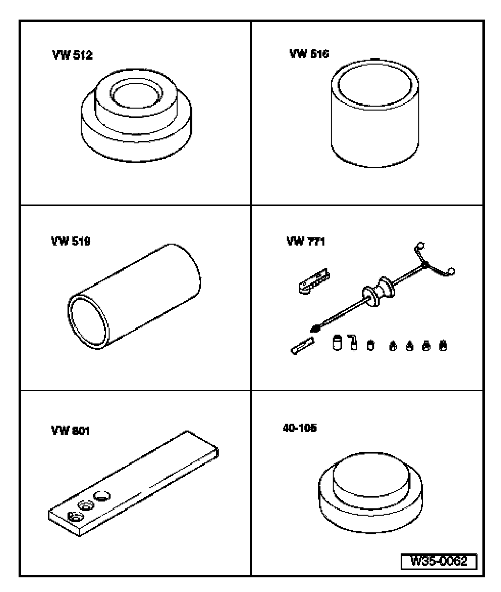^ Support transmission housing with press tool 40-20 directly below bearing mounting.