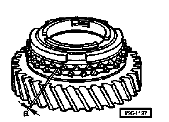 ^ Press synchro-ring onto gear cone and measure gap "a" with feeler gauge.